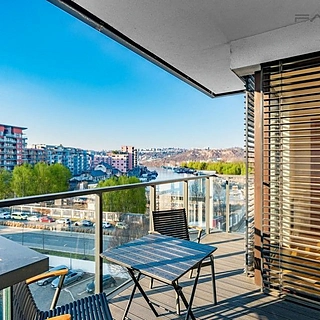 Moderní prostorný byt 2+kk (63,7m2) s terasou, výhledy na Vltavu a přilehlé okolí umístěný v 5. podlaží moderního, velmi oblíbeného rezidenčního...