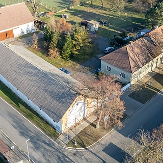 Prodej výrobně skladového areálu s venkovskou usedlostí (RD 83 m2, hospodářská stavba, stodola), pozemek celkem 3.071 m2, Kouty...