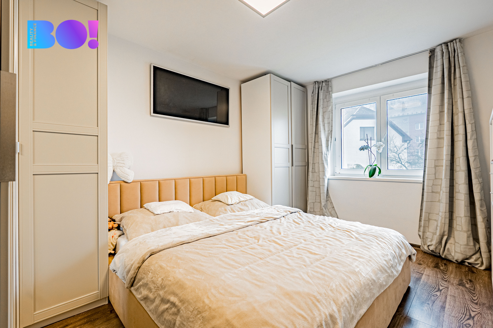 Celková plocha bytu činí 49 m² a jeho velkou výhodou je zasklený balkon o velikosti 4 m², který poskytuje ideální prostor pro ranní kávu, odpočinek nebo příjemné posezení během dne. K bytu náleží také sklepní kóje, která nabízí praktický úložný prostor.