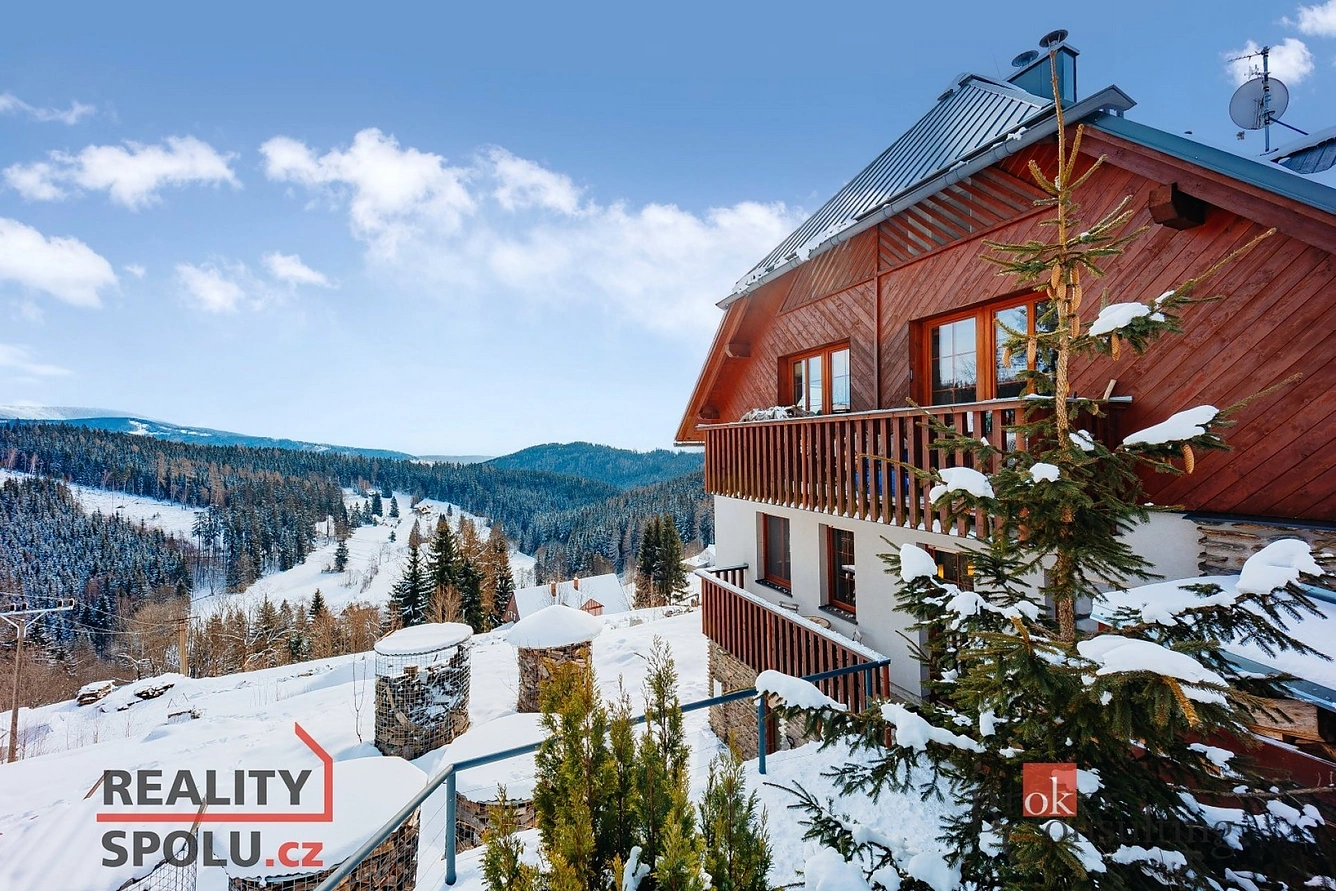 Přímo v Krkonošském národním parku, v horské vesnici Strážné v nadmořské výšce 800 m.n.m. se nachází moderní apartmán, který v sobě stále ukrývá ducha hor. Dispozice 2 + kk a 54 metrů podlahové plochy nabízí dostatečný prostor jak pro klidný rodinný pobyt tak i pro menší oslavy s přáteli. Úsporu prostoru zajišťují vestavěné skříně v chodbě a v ložnici. Kuchyně je plně vybavena vestavěnými spotřebiči a disponuje moderním barovým ostrůvkem s možností posezení. Podlahové vytápění je v celém apartmánu. Pohodovou atmosféru dokreslí krb s rozvodem tepla do ložnice. Koupelna se sprchovým koutem, 2 umyvadly, pračkou a susičkou je oddělena od samostatně stojícího WC. Kdo nemá po celodenní tůře či lyžování horského vzduchu dost, může si ho vychutnávat na vlastní terase plnými doušky. K dispozici také krytý bazén a sauna v suterénu. Vyhrazené parkovací stání u domu. 2 lyžařské vleky se zasněžováním, večerním lyžováním, restaurace, kavárna, lyžařská škola, či strojově upravované běžecké stopy v docházkové vzdálenosti od domu. Připraveno k okamžitému nastěhování, bez nutnosti dalších investic do vybavení.