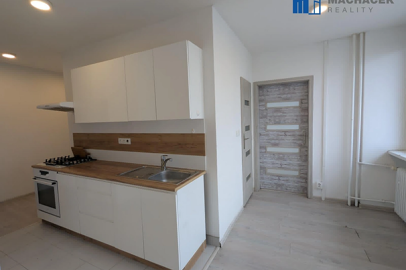 Byt je prostorný a světlý, v kuchyni je hezká kuchyňská linka s plynovým sporákem a digestoří.