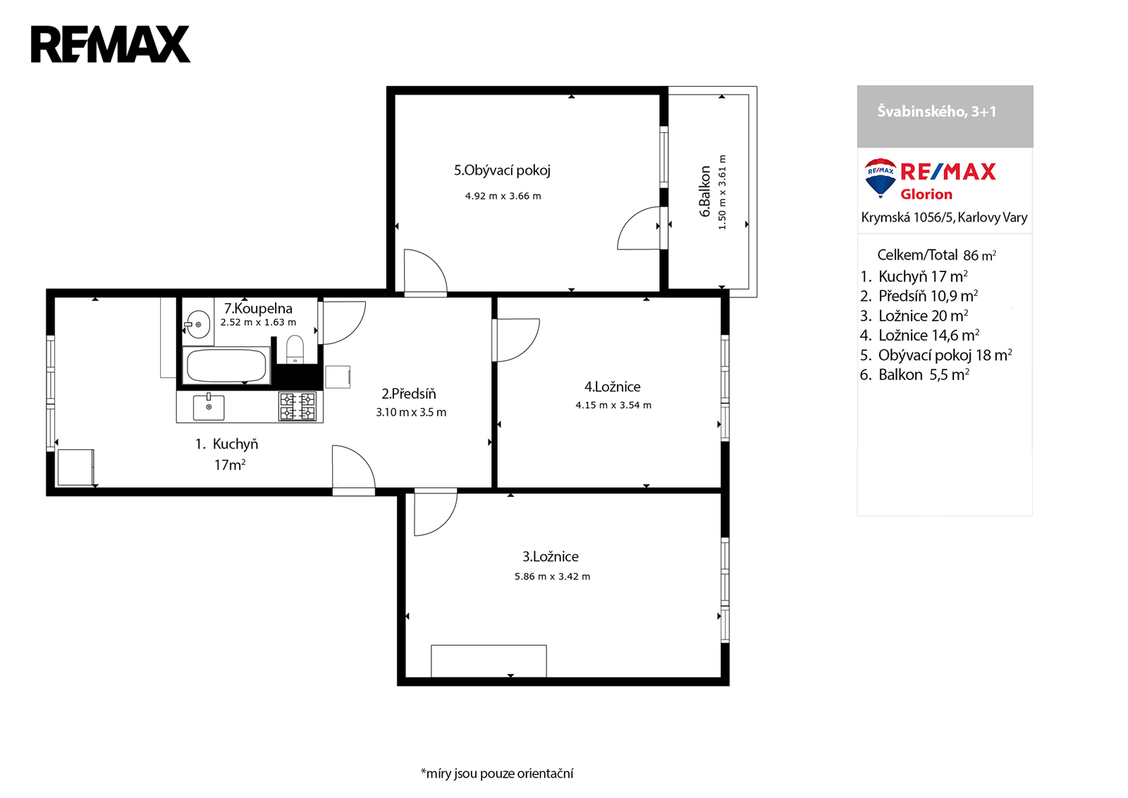 Dispozice bytu tvoří obývací pokoj, dvě samostatné ložnice, kuchyň, koupelna s WC a předsíň. K bytu náleží balkon a dva sklepy, které poskytují nadstandardní úložný prostor.