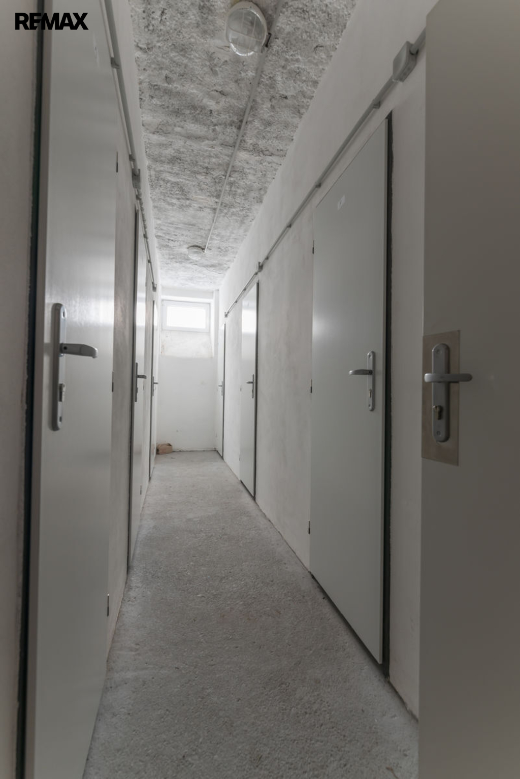 K bytu náleží sklep, který je zabezpečen dveřmi, ale i bezpečnostní mříží. Dále v podzemí nalezneme i prádelnu a sušárnu, která je stále plně funkční.