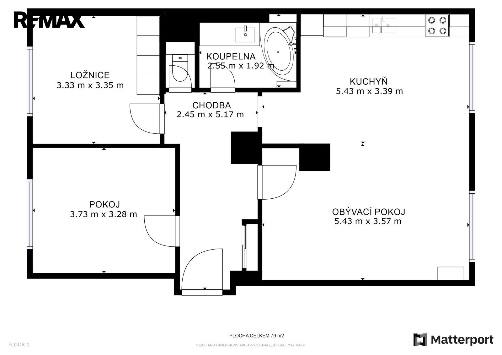 Dispozice bytu 3+1 nabízí vstupní halu, samostatnou kuchyň s jídelnou. Nebo může se změnit na prostorný obývací pokoj s přímým možným průchodem dveřmi do chodby.