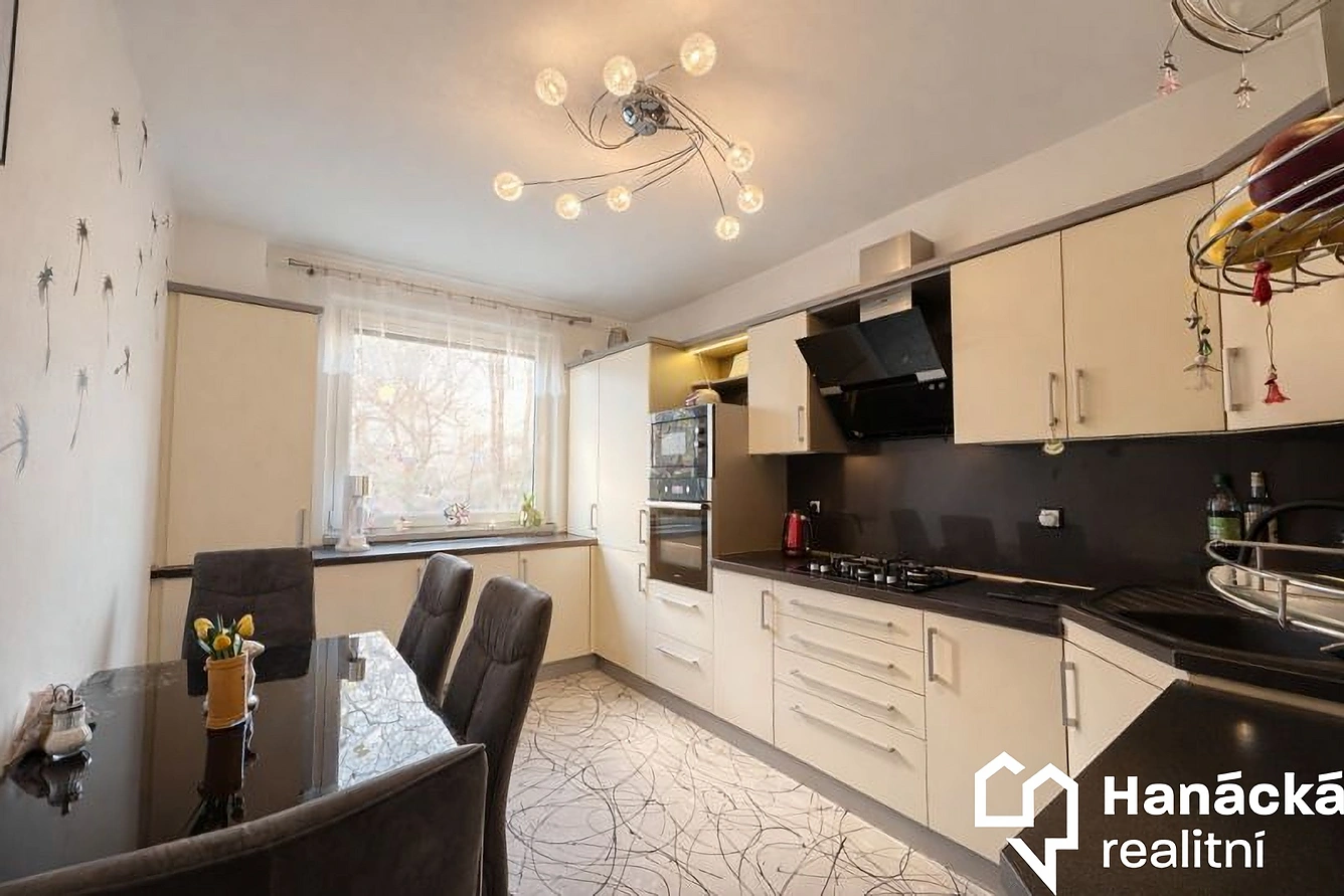 Výměra 87 m² řadí tuto nemovitost mezi nadstandardně prostorné byty, které hravě uspokojí nároky i početnější rodiny. Příjemným rozšířením obytného prostoru je zasklená lodžie s výhledem do zeleně. Praktickou stránku bydlení doplňuje prostorný sklep. Umístění bytu - 1. nadzemní podlaží (zvýšené přízemí).