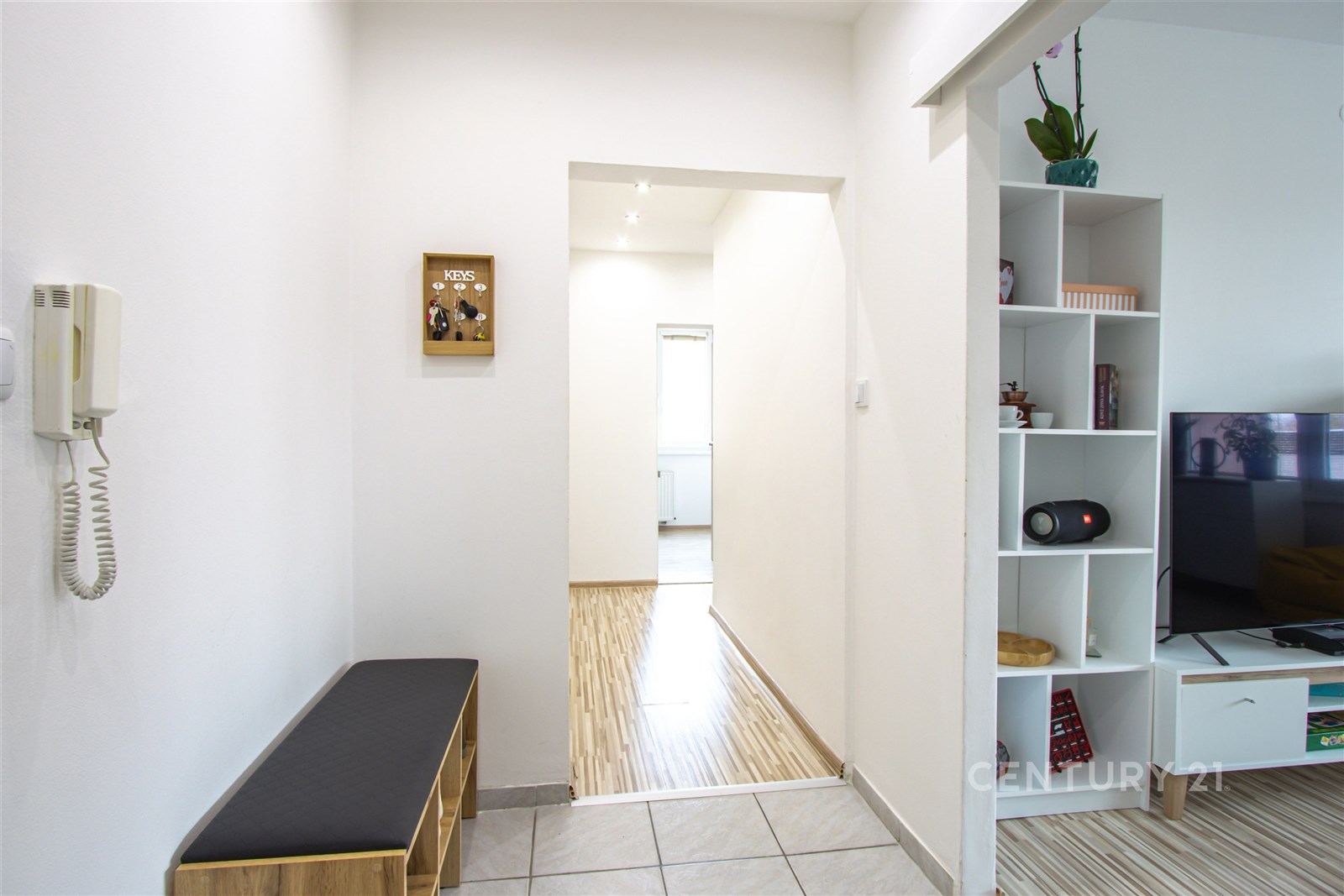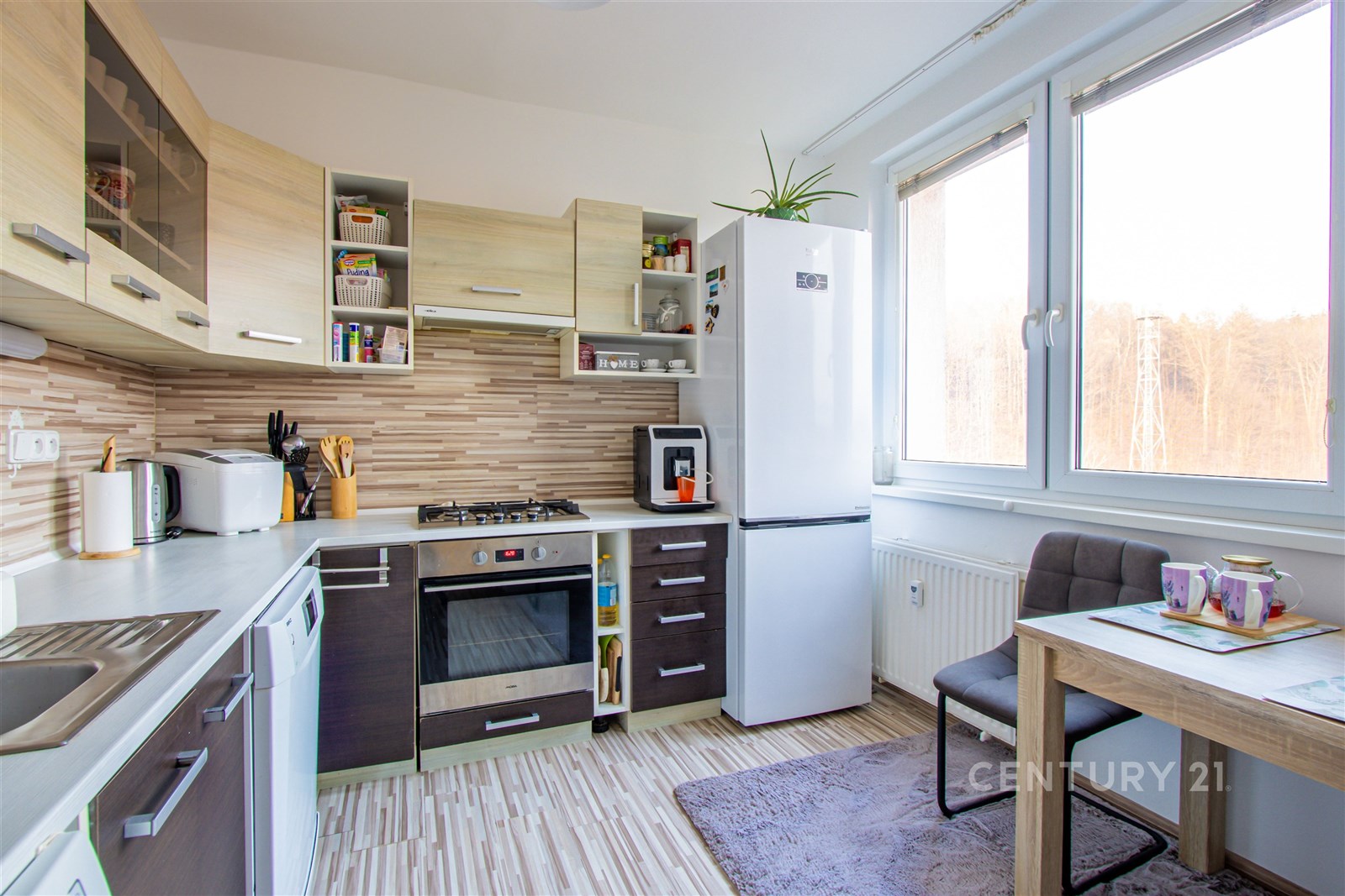 Byt má praktickou dispozici 3+1 s komorou a byly v něm provedeny úpravy – nové rozvody elektřiny, zděné jádro, nové omítky a bodová světla v chodbě, která vytváří příjemné světlo při příchodu domů.