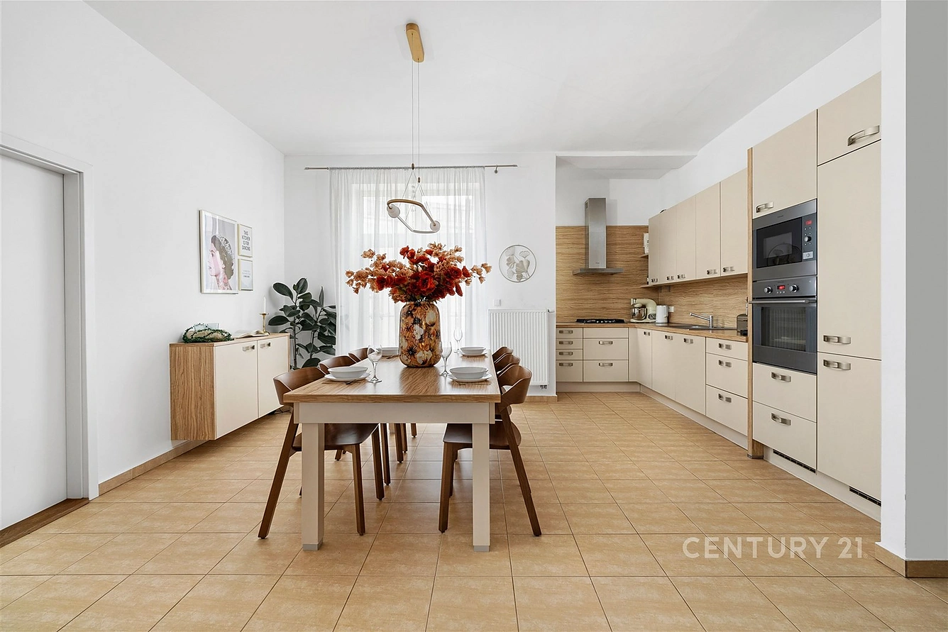 Dispozice nabízí čtyři samostatné pokoje – takže každý může mít svůj klid: dětské pokoje, pracovnu, hostinský pokoj nebo šatnu. K tomu samostatná kuchyně a praktické úložné prostory v podobě komory/spíže, které v městských bytech často chybí.
