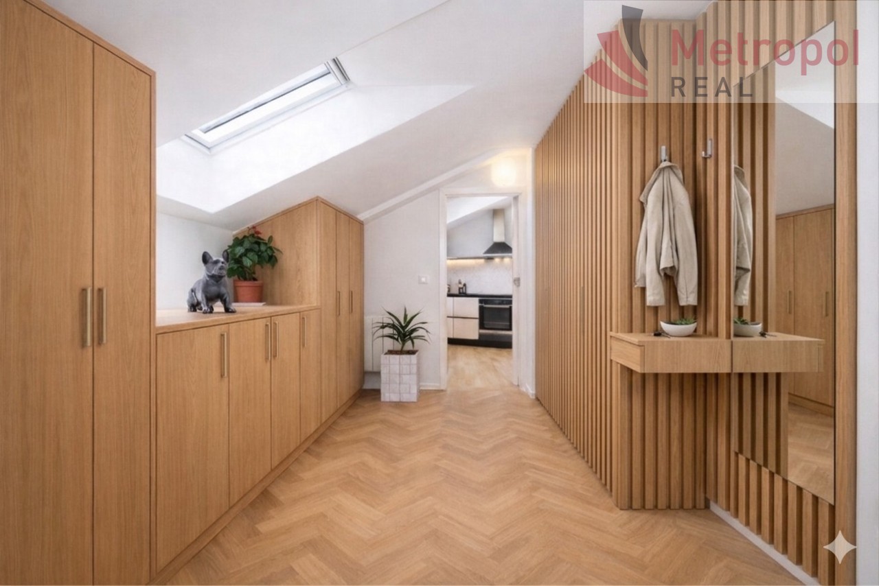 Unikátní 4+kk s balkonem, kde jedinou návštěvou bude slunce. Celé patro pro vás!Představte si domov, kde město končí a začíná váš klid. V posledním patře domu v ulici Lipnická na vás čeká unikátní podkrovní byt, ke kterému nevede žádná sdílená chodba. Výtah vás vyveze do 5. patra a závěrečných pár schodů do patra šestého už patří jen vám. Žádní sousedé, žádný hluk z chodby – jen vaše soukromé království.Hledáte v Praze bydlení, které má styl a nebývalou míru soukromí? Nabízíme k prodeji podkrovní byt 75 m² v Kyjích, který v rámci prodeje kompletně zrekonstruujeme na moderní 4+kk s novým balkonem plus komora (2 m²) přímo na vašem soukromém patře.Cena 9.690.000,- Kč včetně rekonstrukce: Tato částka zahrnuje vše – změnu dispozice, nové dubové podlahy Chevron, prémiová italská dlažba a obklady, zakázkový nábytek na míru včetně kuchyňské linky na míru a prémiové spotřebiče …… Součástí proměny je vybudování velkorysého balkonu, který podkroví otevře a dodá mu nový rozměr. Vizualizace odpovídají reálnému standardu dokončení.V rámci rekonstrukce můžete ovlivnit finální výběr materiálů a vytvořit si domov podle svého vkusu.Dům z roku 2000 je ve skvělém stavu. Parkování je bezproblémové před domem, nebo lze využít vnitřní stání za 2 000 Kč/měsíc.Praha 9 – Kyje, ulice Lipnická. Klidná zóna s dobrou dostupností.Nekupujte jen metry, kupte si klid v nejvyšším patře. Zavolejte a domluvte si prohlídku projektu ještě dnes!
