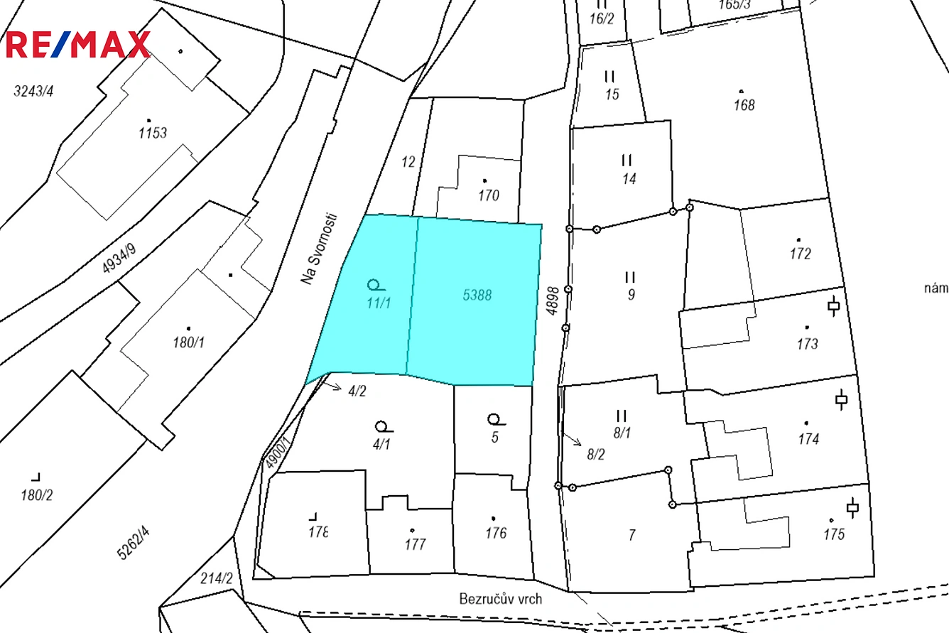Parcela 5388, vedena jako ostatní plocha má evidovanou výměru 430 m2. Na této parcele jsou pozůstatky budovy, který zde stála.