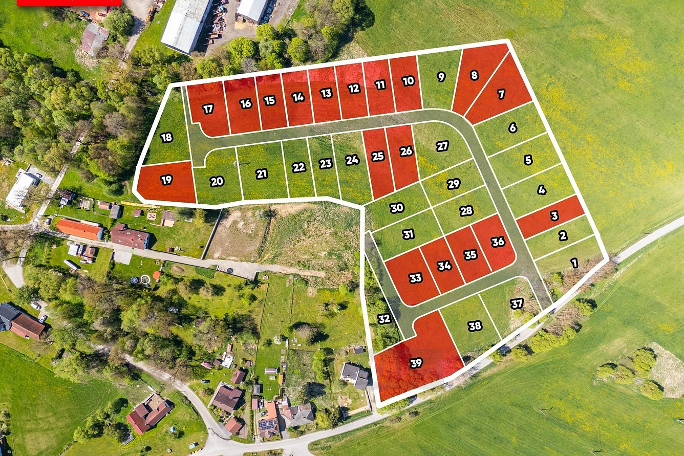 - 39 stavebních pozemků – vyberte si ten pravý pro vás! Z toho 25 pozemků je stále volných, ale pozor, zájem roste – 14 je již rezervovaných!