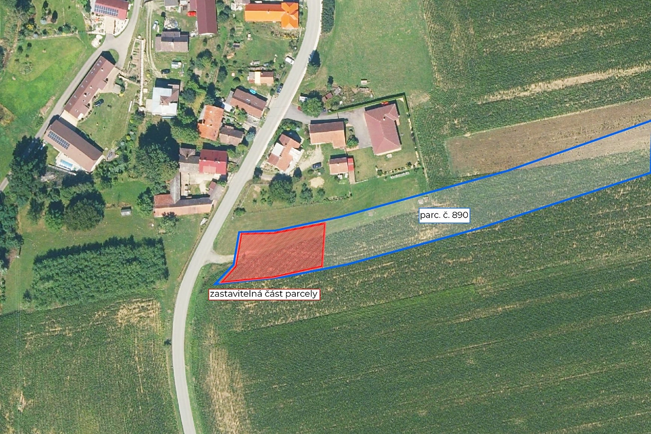 V exkluzivním zastoupení vlastníka nabízím k prodeji částečně stavební pozemek přímo u obce.