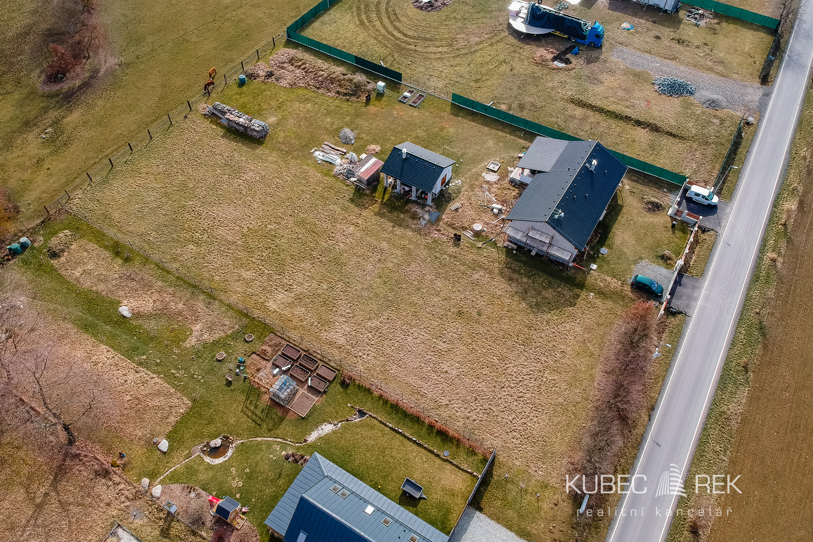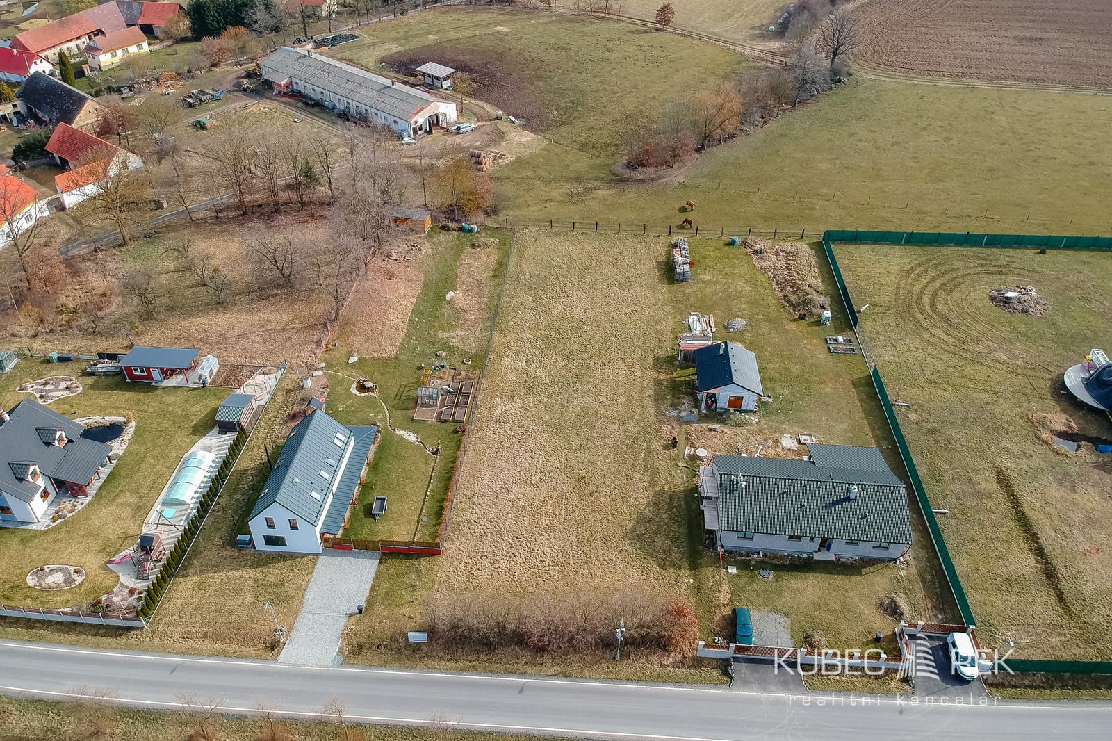 Pozemek má výměru 2 095 m², je rovinatý, má obdélníkový tvar a přístup přímo z obecní komunikace. Díky tomu je ideální pro výstavbu rodinného domu a zároveň nabízí dostatek prostoru na zahradu, terasu, bazén, garáž nebo třeba ovocné stromy a skutečné soukromí kolem domu.