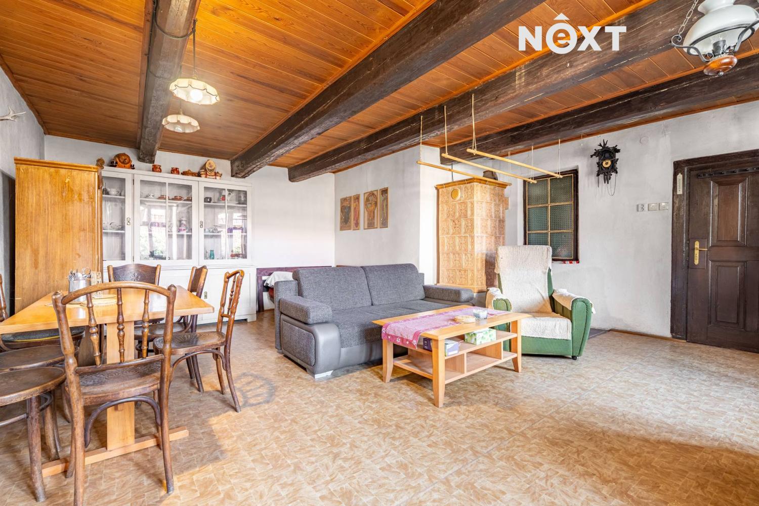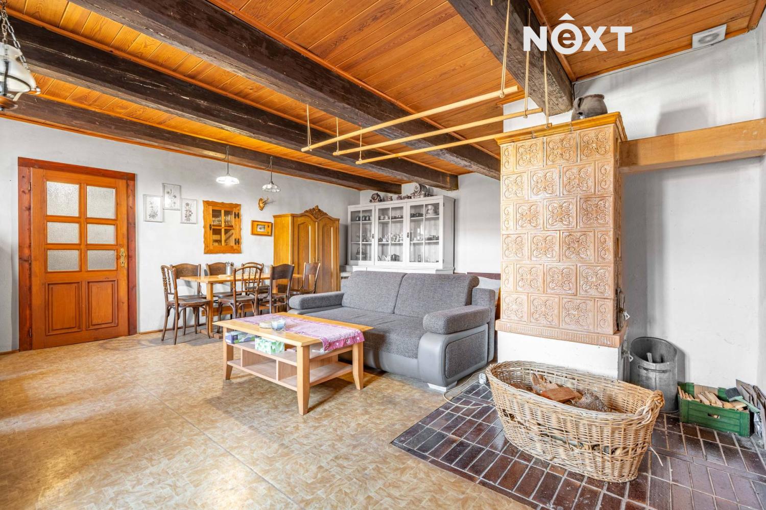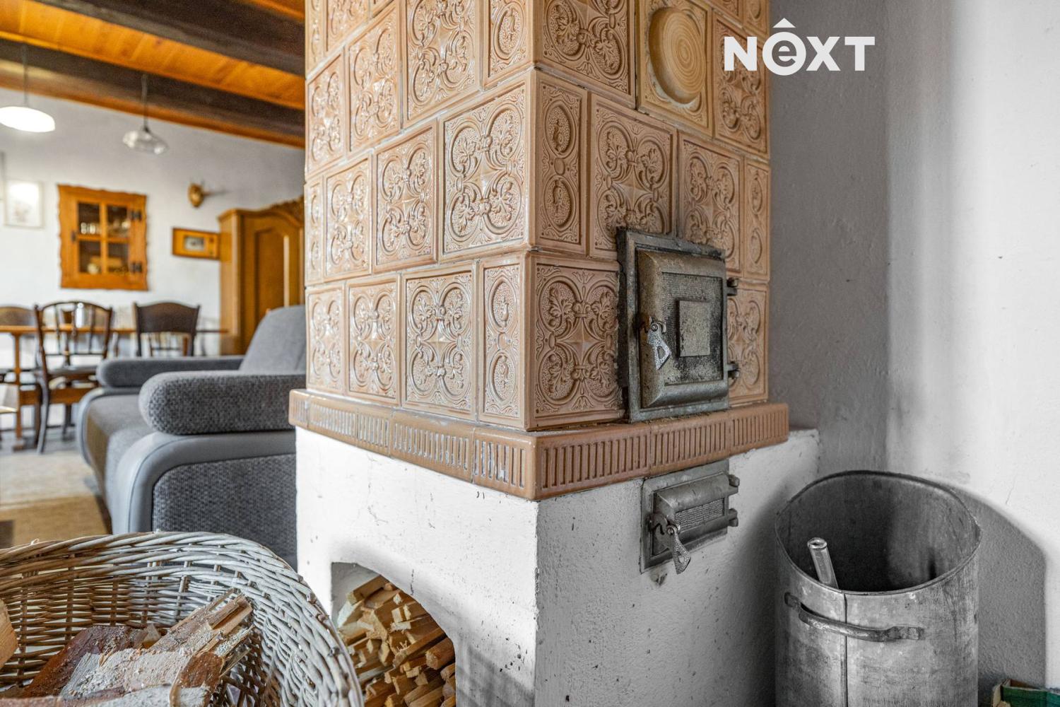 Přízemí v rustikálním stylu, které je plně funkční a kde se o teplo starají kachlová kamna. Také zde najdete malou kuchyňku, koupelnu s toaletou a další místnosti, jejích určení už bude na vás.