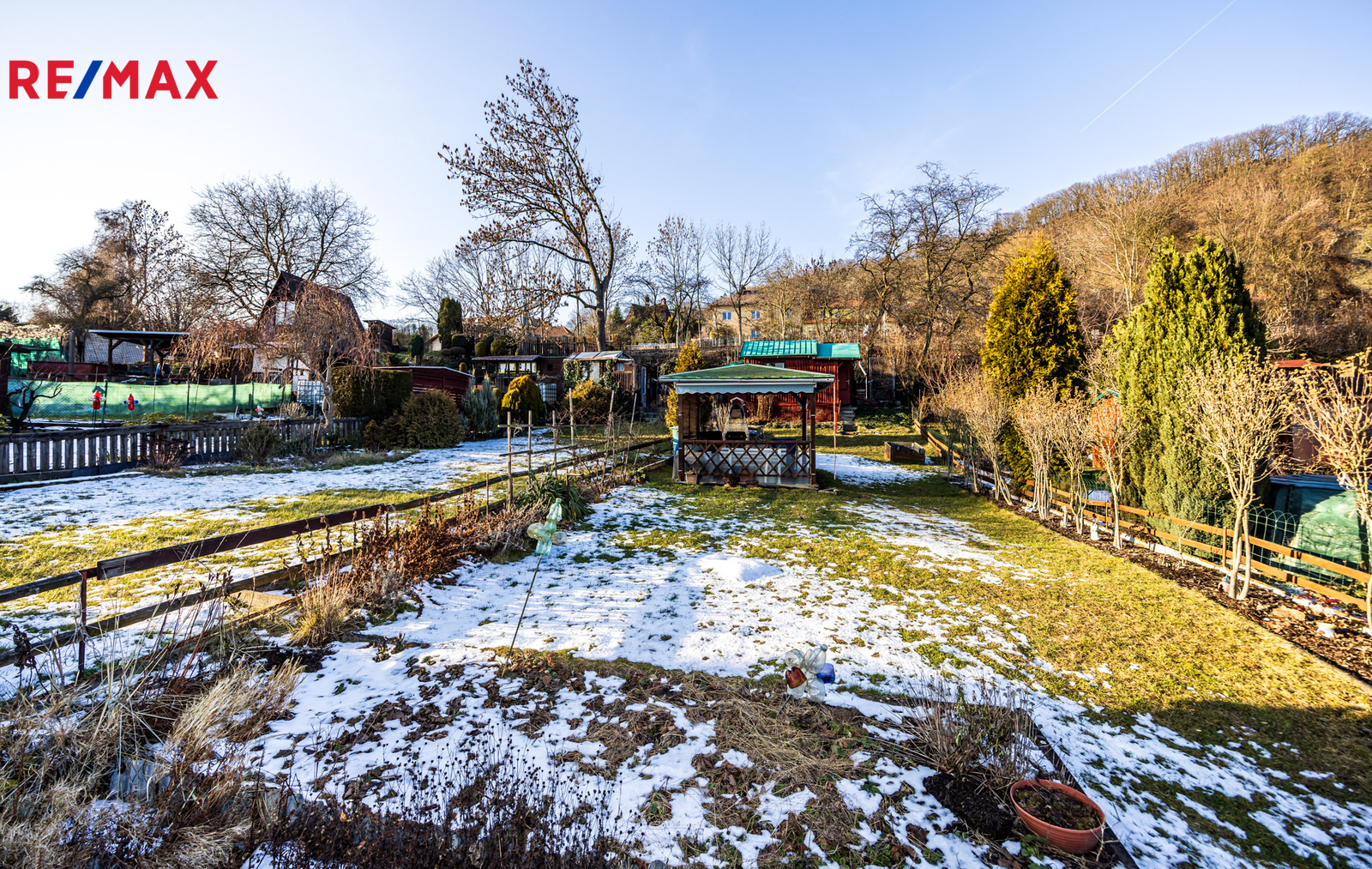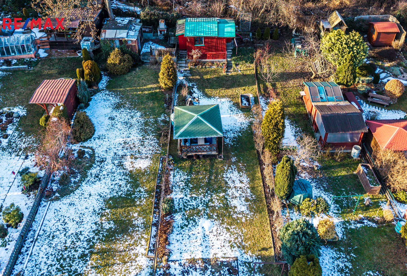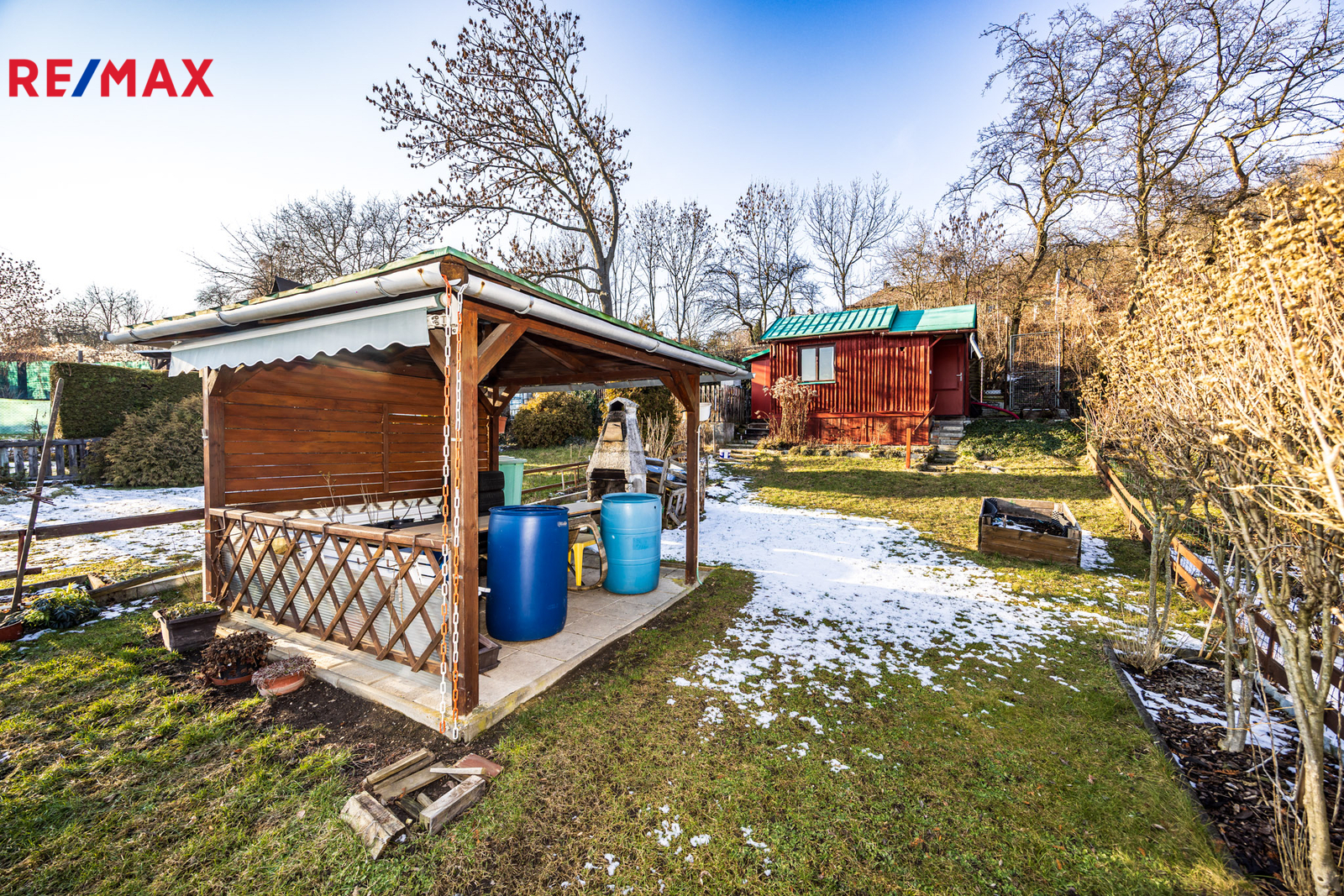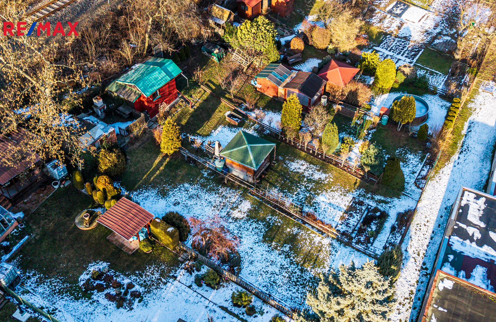 Pozemek o velikosti 225 m² je napojen na elektřinu i vodu, takže poskytuje plnohodnotné zázemí po celou sezónu. Součástí je dřevěná chatka (16 m²) a prostorný altán pro pohodové posezení, grilování či klidné chvíle s výhledem do zeleně.