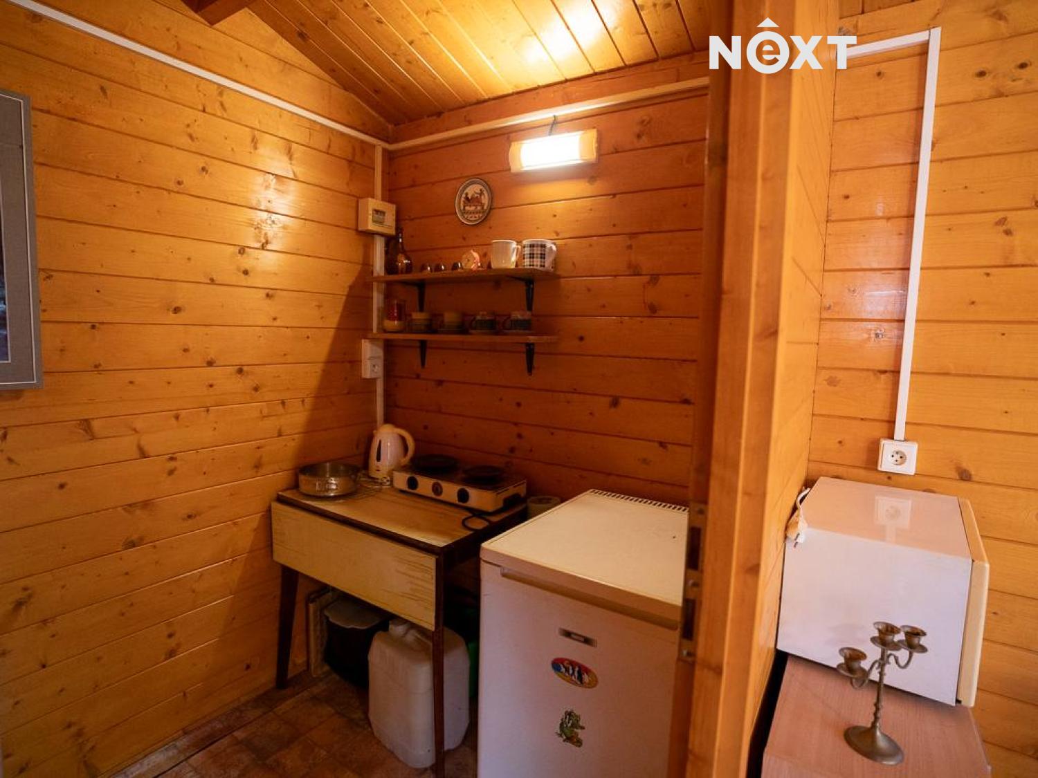 Chata o zastavěné ploše 26 m² stojí na kamenné podezdívce, nabízí dvě místnosti s kuchyňkou, krbové kamna na topení a terasu ideální na ranní kávu nebo večerní posezení. Součástí je také toaleta a praktická místnost na nářadí.