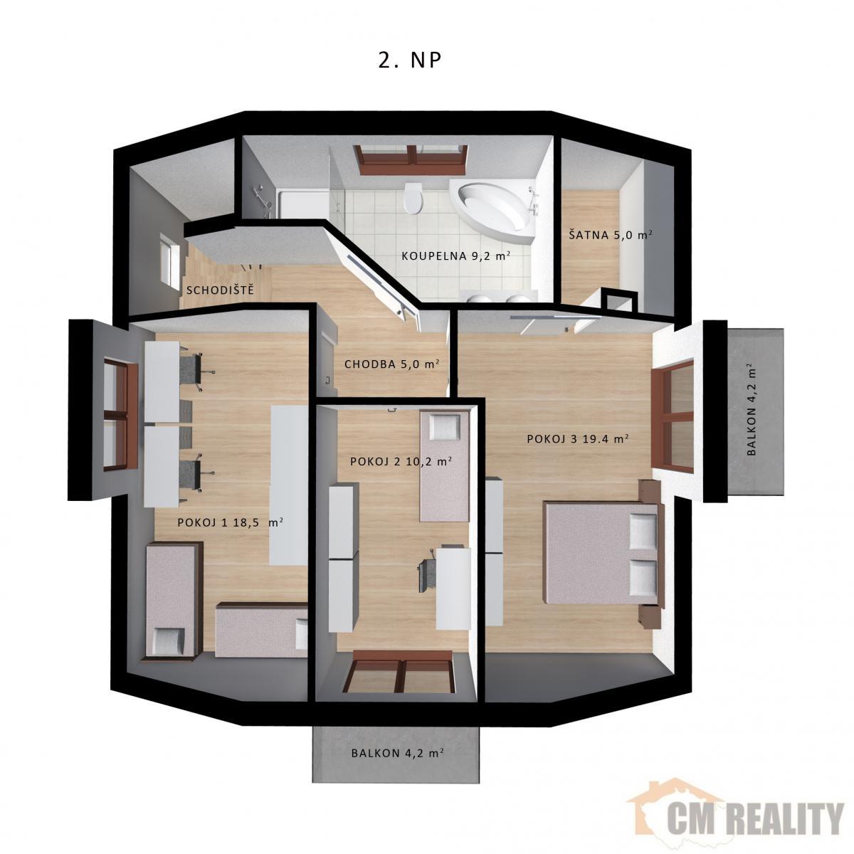 Plocha pozemku celkem 757 m2, z toho 93 m2 zast. plocha domu, 23 m2 garáže a 641 m2 zahrada. Podlahová plocha domu 198 m2, obestavěný prostor 678 m3.