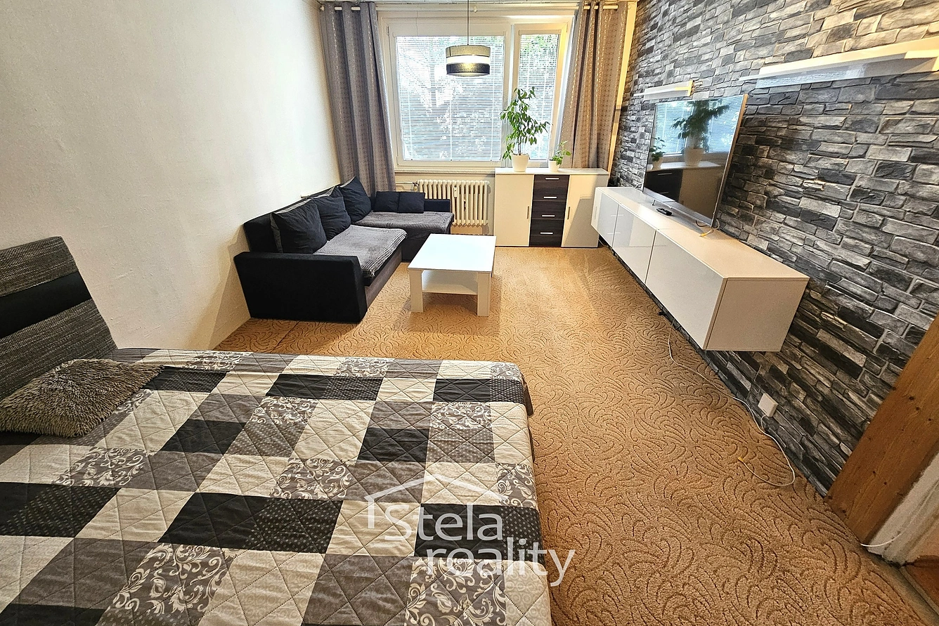 Nabízíme k pronájmu byt 1+1 s lodžií, 39 m2, osobní vlastnictví, ul. Dělnická, Bruntál, 1p. / 7p. panelového domu. Byt je po rekonstrukci - plastová okna, zděné jádro, nová elektřina v jádru a kuchyni, koupelna a WC obloženy keramickým obkladem, kuchyňská linka na míru, na podlahách v pokoji, předsíni a kuchyni plovoucí podlaha, v koupelně a na WC keramická dlažba, interiérové dveře. K bytu náleží zděný sklep a balkón, který se nachází mimo byt v mezipatře. Dům je po celkové revitalizaci. Byt se pronajímá částečně zařízený - sedací souprava, obývací stěna, konferenční stolek, skříně v předsíni, kuchyňský stůl, 2 židle a lednice. V blízkosti veškerá občanská vybavenost - škola, školka, obchody, hřiště, restaurace. Volný ihned. Dlouhodobý pronájem s možností trvalého pobytu.