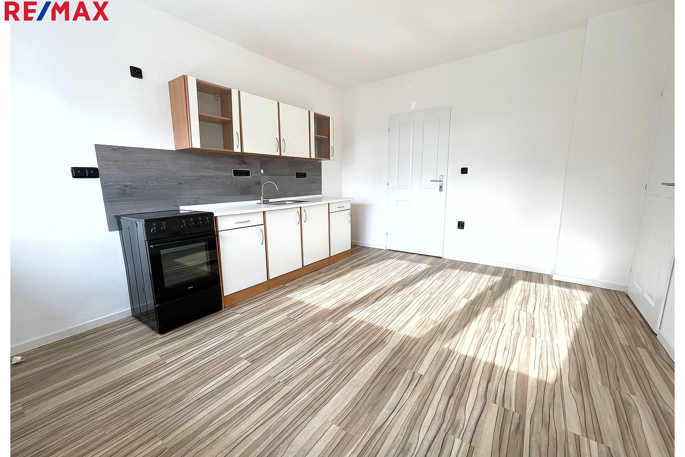 Byt se nachází v přízemí menšího bytového domu, je vhodný pro jednotlivce nebo pár. K dispozici je kuchyň s kuchyňskou linkou, prostorný pokoj, koupelna se sprchovým koutem a WC.