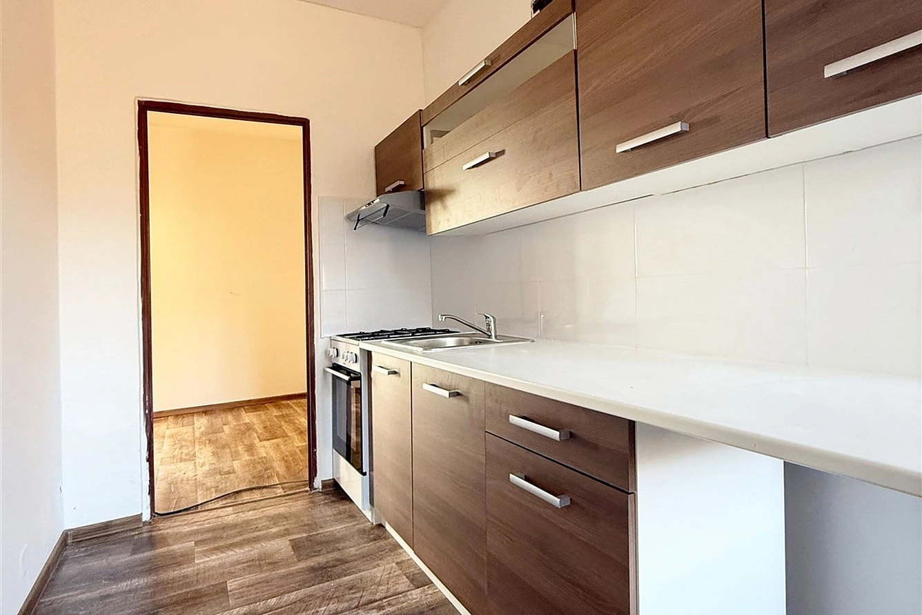 Je to čistý a slunný byt. Je zde kuchyňská linka, plynový sporák, vana, umyvadlo a WC. Na podlahách je položeno lino. Byt je volný k nastěhování IHNED.