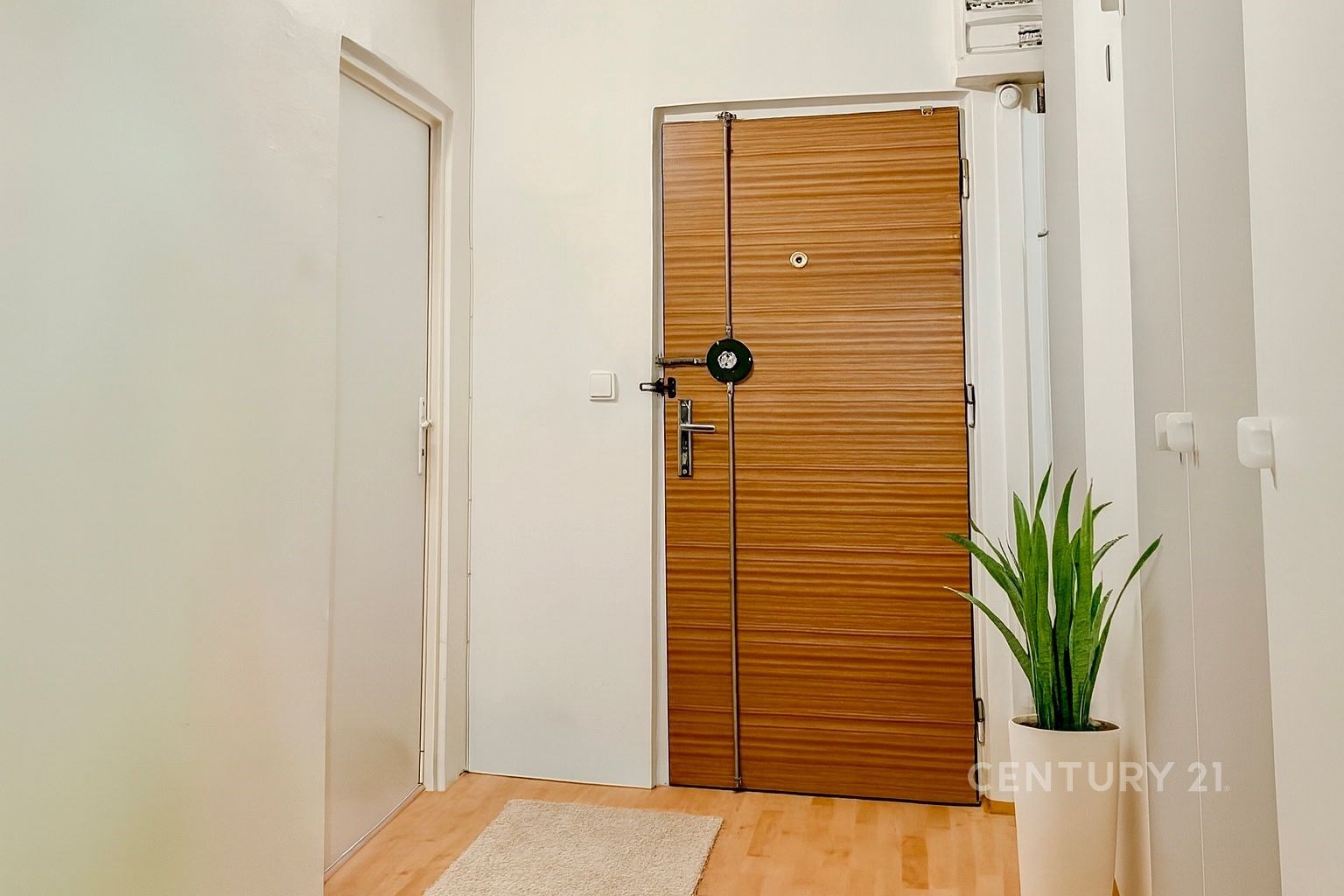 Součástí bytu je prostorná vstupní chodba s velkou vestavnou skříní, 3 samostatné neprůchozí pokoje, obývací pokoj, ze kterého je vstup na balkon. V kuchyni je kuchyňská linka vybavena spotřebiči (lednice s mrazákem, varná deska, elektrická trouba, digestoř).