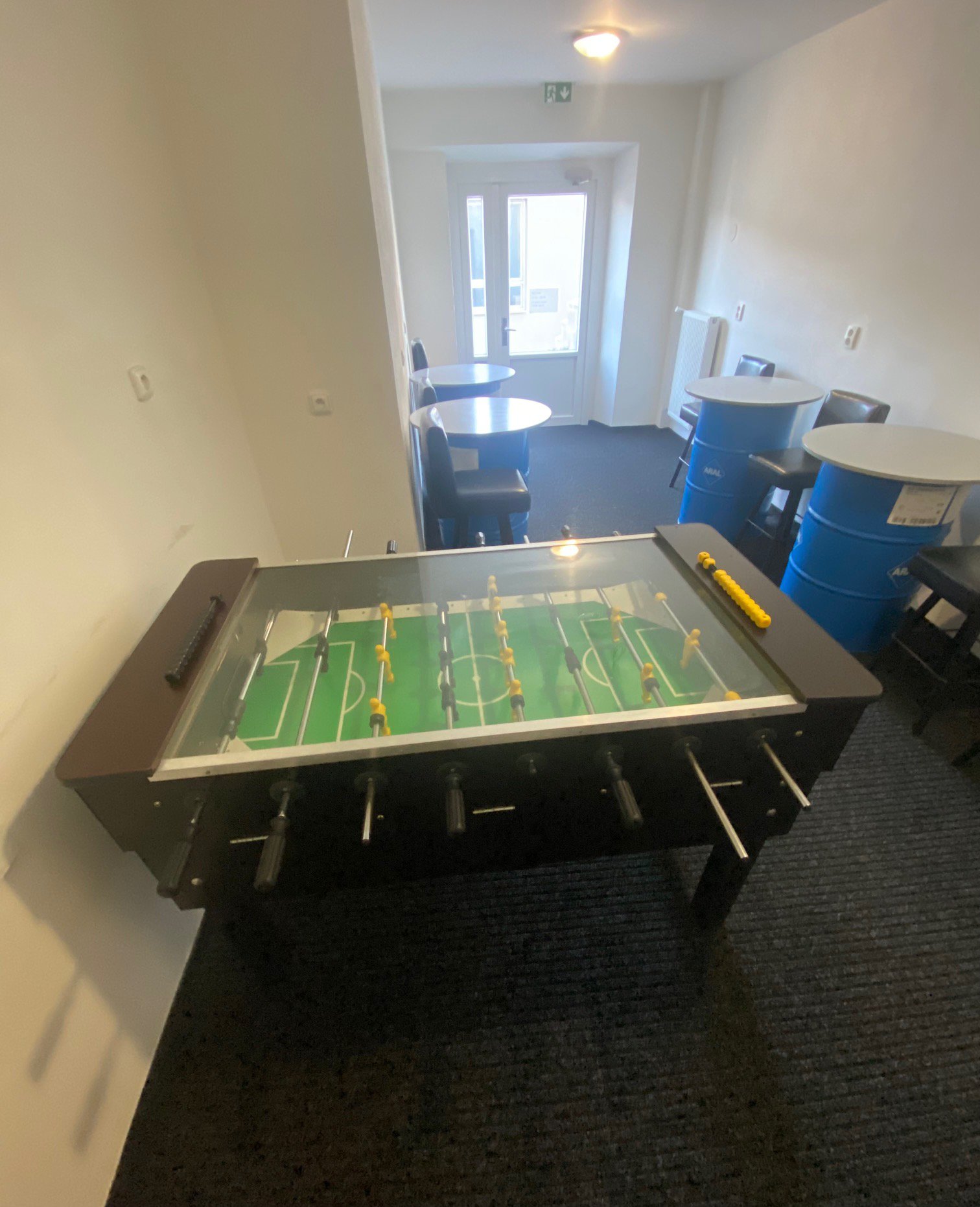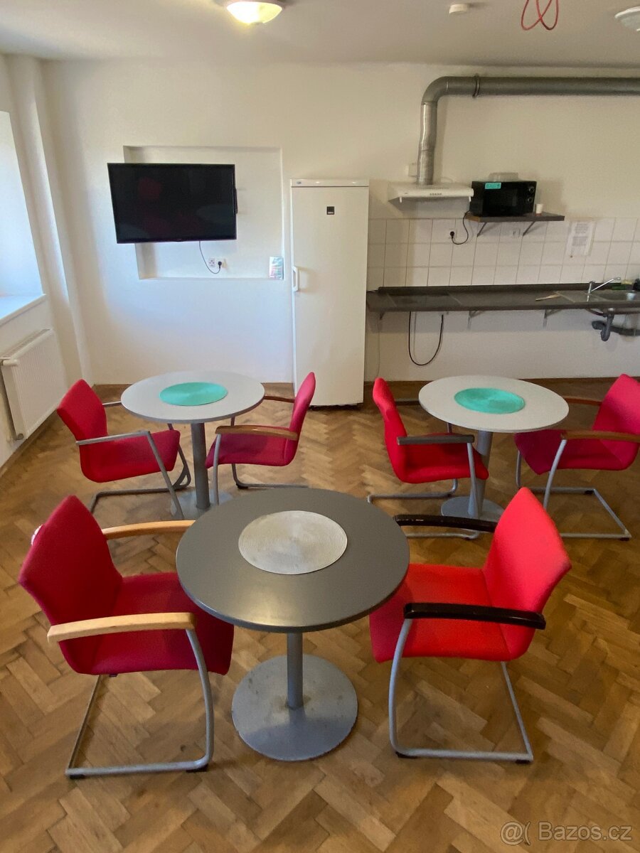 • Společenskou místnost s TV, stolním fotbálkem a poklidným koutkem pro čtení z naší malé knihovny