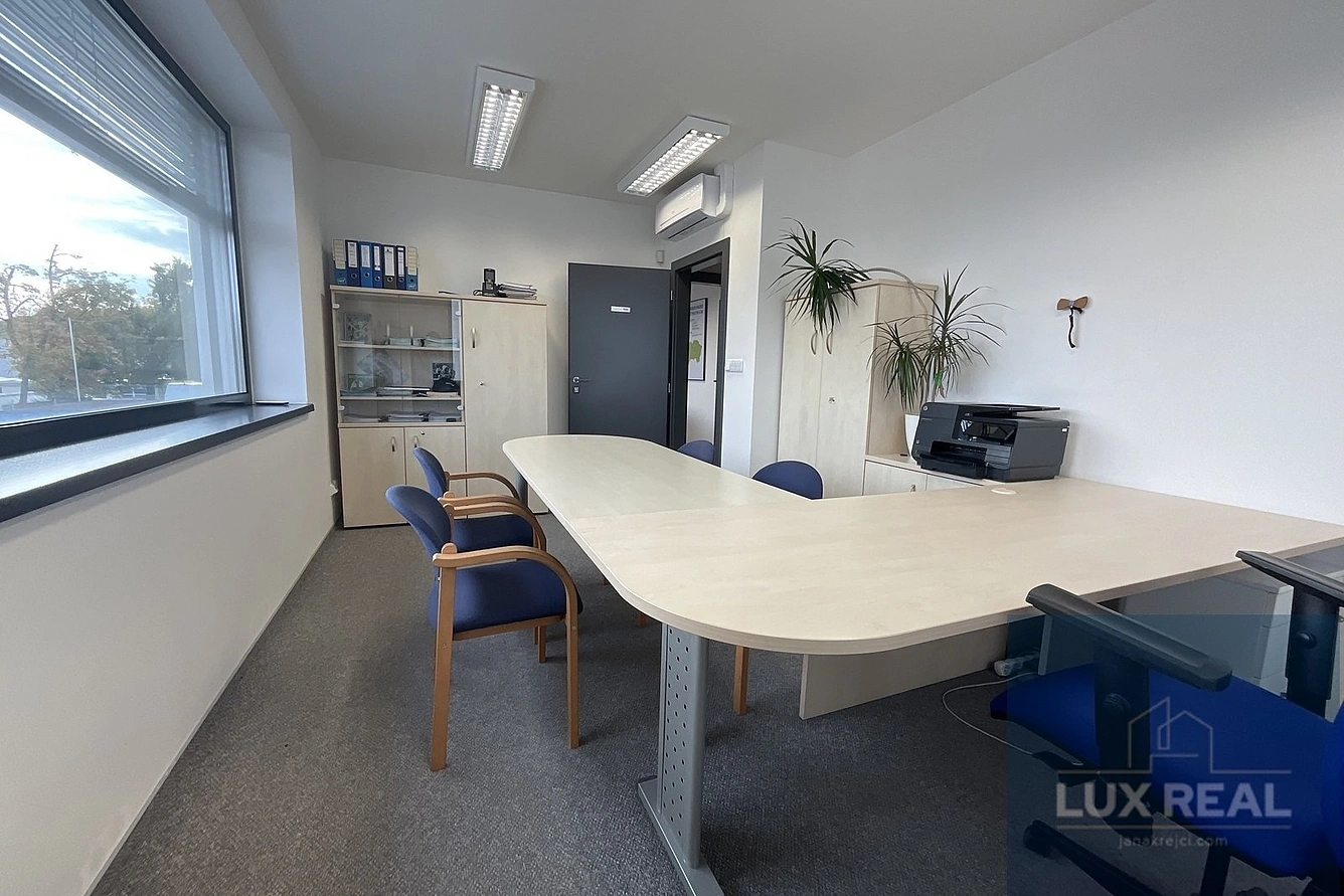 Nabízíme Vám pronájem nových moderních kancelářských prostor v administrativní novostavbě s parkovacími stáními v Brně - Líšni.Jsou to ideální prostory pro sídlo Vaší společnosti na jednom z nejlukrativnějších městských částí. Má vše co každá větší firma potřebuje.DISPOZICE:V přízemí vejdeme do vstupní haly a po schodišti do patra, kde nás vstoupíme do haly o výměře cca 8,4m2 s kuchyní a jídelním koutem o výměře cca 11,64m2, samostatným WC se sprchovým koutem o výměře 5,15m2, 4 samostatnými kancelářemi a skladem.Kuchyně s jídelním koutem je komplet vybavena lednicí, indukční deskou, mikrovlnnou troubou. Každá kancelář je vybavena klimatizací značky Acond a venkovními žaluziemi. Místnosti jsou poměrně veliké a jejich výměra činí cca 25,2m2, cca 15,36m2, cca 12,45m2, cca 20,11m2. Mezi dvěmi kancelářemi je samostatná místnost o výměře cca 5,89m2, která může sloužit jako úklidová místnost, archiv, ale i jako serverovna.Součástí pronájmu jsou i 4 parkovací místa přímo před budovou.Měsíční poplatky:Nájem za prostory činí 60.000, -Kč měsíčně + DPH v zákonné výši.Parkovací místa jsou zahrnuta v ceně nájmu.Služby budou hrazeny formou záloh měsíčně.Kauce činí 120.000, -KčProstory jsou ihned k dispozici. Můžete si je pronajmout, jak komplet vybavené dle fota nebo bez vybavení.Nabízené prostory jsou vhodné nejen jako kanceláře, ale i díky dostatku parkovacích míst je zde potenciál ke spojení obchodních prostor s kancelářemi. Velkou výhodou je, že je vše nové.Průkaz energetické náročnosti budovy není aktuálně k dispozici. V inzerci je dle legislativních požadavků uvedena en. třída G.V případě dotazů či zájmu o prohlídku nás neváhejte kontaktovat na níže uvedeném čísle nebo e-mailu.